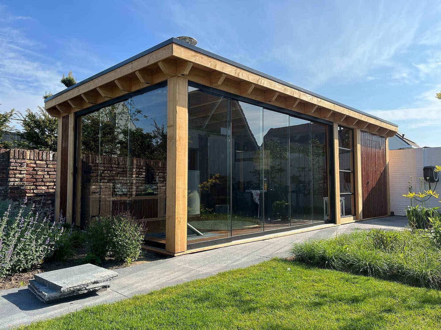 Vuren vind het wel fijn om behandelt te worden in verband met dat het niet goed tegen de weersinvloeden kan. Daarom verwerken wij dit vaak in een dak wat helemaal afgewerkt word of als het helemaal geschilderd mag worden.